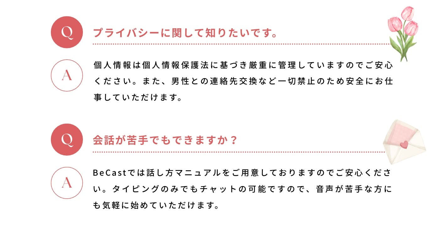 こんにちは!BeCastです! チャットを始めたいけど、面接に行くのが不安・・・ BeCastでは 面接なく、カウンセリングをしてからお仕事 を始めることができます♪ 今日は安心してお仕事始められるようにカウンセリングまでの流れをご紹介で...